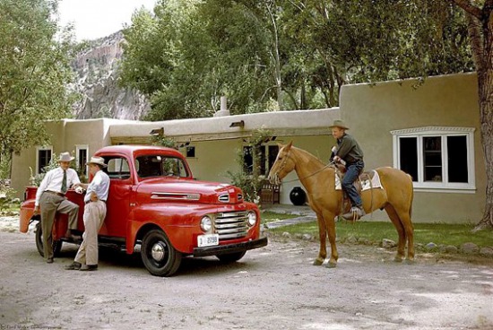 福特F系列皮卡誕生于1948年,是為了取代福特此前基于汽車生產(chǎn)的皮卡車型。第一代福特F系皮卡看起來并不是那么威猛,細(xì)長而圓潤的發(fā)動(dòng)機(jī)蓋以及多橫幅的進(jìn)氣格柵讓這款車的前臉看起來很可愛。第一代F系列車型有2門版和4門版兩種車身結(jié)構(gòu),其中2門版被稱為pickup:皮卡。而4門版被稱為paneltruck:小型運(yùn)貨汽車。