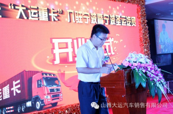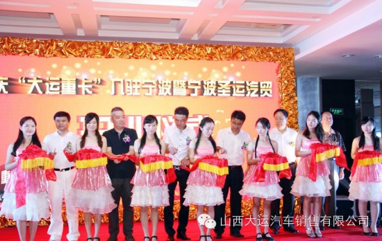 伴隨著大運(yùn)重卡品牌影響力及市場占有率的不斷擴(kuò)大,越來越多的經(jīng)銷商加盟了大運(yùn)重卡這個團(tuán)隊(duì)。近日,大運(yùn)重卡新加盟經(jīng)銷商寧波圣運(yùn)汽貿(mào)在寧波地區(qū)舉行了慶大運(yùn)重卡入駐寧波即開業(yè)活動。本次活動圍繞“慶祝汽貿(mào)開業(yè)”和“大運(yùn)產(chǎn)品推介”為主題開展,并結(jié)合“五星大運(yùn),星動中國”的營銷氛圍,取得了良好的效果。